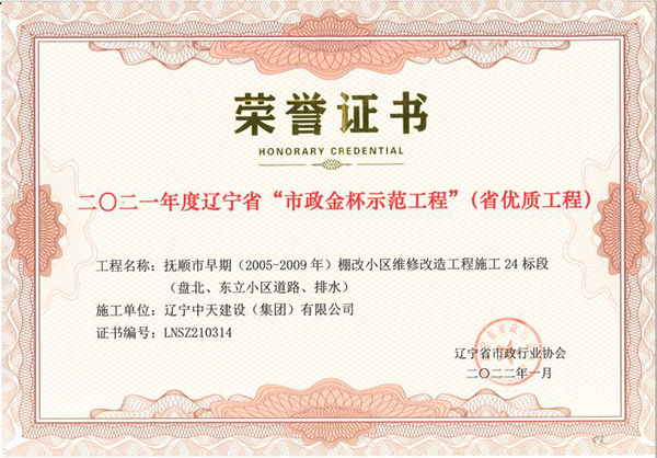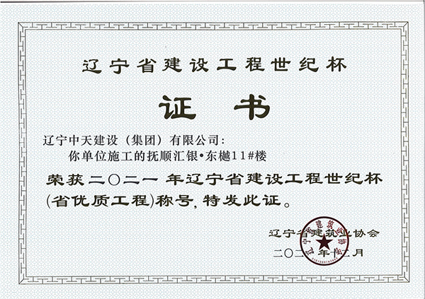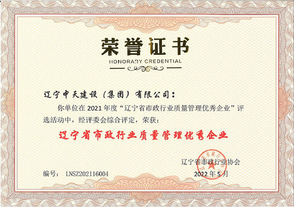 企業(yè)先后榮獲“全國優(yōu)秀施工企業(yè)”、 “中國AAA級信用企業(yè)”、“全國保障性安居工程建設(shè)勞動競賽先進(jìn)單位”、“遼寧省最受尊敬企業(yè)”、“遼寧省優(yōu)秀建筑業(yè)企業(yè)”、“遼寧省工程建設(shè)質(zhì)量管理優(yōu)秀企業(yè)”、 “遼寧省守合同、重信用企業(yè)”、遼寧省“AAA級信用企業(yè)”、 “撫順市安全生產(chǎn)先進(jìn)單位、紅旗單位”、“撫順市安康杯競賽先進(jìn)集體”等多項(xiàng)殊榮。