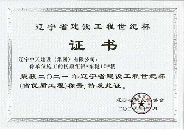 遼寧中天建設(shè)集團(tuán)領(lǐng)導(dǎo)班子認(rèn)真貫徹落實(shí)科學(xué)發(fā)展觀,堅持以人為本,積極培育“開拓進(jìn)取,求新向上,求真務(wù)實(shí),團(tuán)結(jié)奉獻(xiàn)”的企業(yè)精神和“干一項(xiàng)工程交一方朋友,占一方市場,樹一座豐碑”的經(jīng)營理念。經(jīng)過遼寧中天建設(shè)者的辛勤耕耘,許多建筑精品工程象一座座豐碑聳立在撫順大地上,令人矚目。撫順市保障性住房建設(shè)工程榮獲全國優(yōu)質(zhì)工程金獎,撫順移動通訊綜合樓、撫順市電信綜合樓、撫順市三寶屯污水處理廠擴(kuò)建及中水回用工程等多項(xiàng)工程獲得“遼寧省世紀(jì)杯工程”、“遼寧市政金杯”工程等殊榮。公司還多次榮獲“省建筑業(yè)質(zhì)量管理先進(jìn)施工企業(yè)”稱號。
